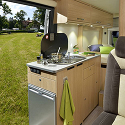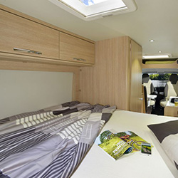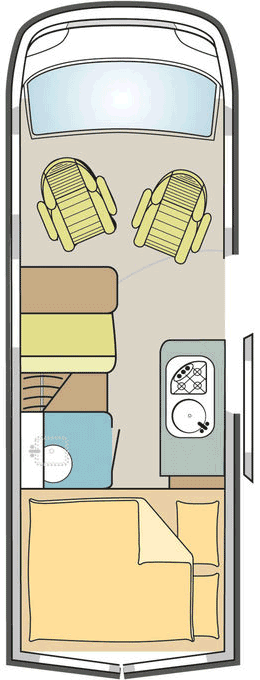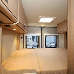 Dieser kompakte Kastenwagen (6m Länge) eignet sich hervorragend für 2 Personen. Ob als Städtetouristen oder „Norwegenentdecker“ reist man fast wie mit einem PKW und hat trotzdem die Annehmlichkeiten eines Wohnmobils dabei: Raumbad, Doppelbett, Küche, Sitzgruppe, Markise, 2er Fahrradträger & Rückfahrkamera mit Navi. Notfalls kann man auch noch ein 3.Bett entstehen lassen, wenn man die Sitzgruppe umbaut.